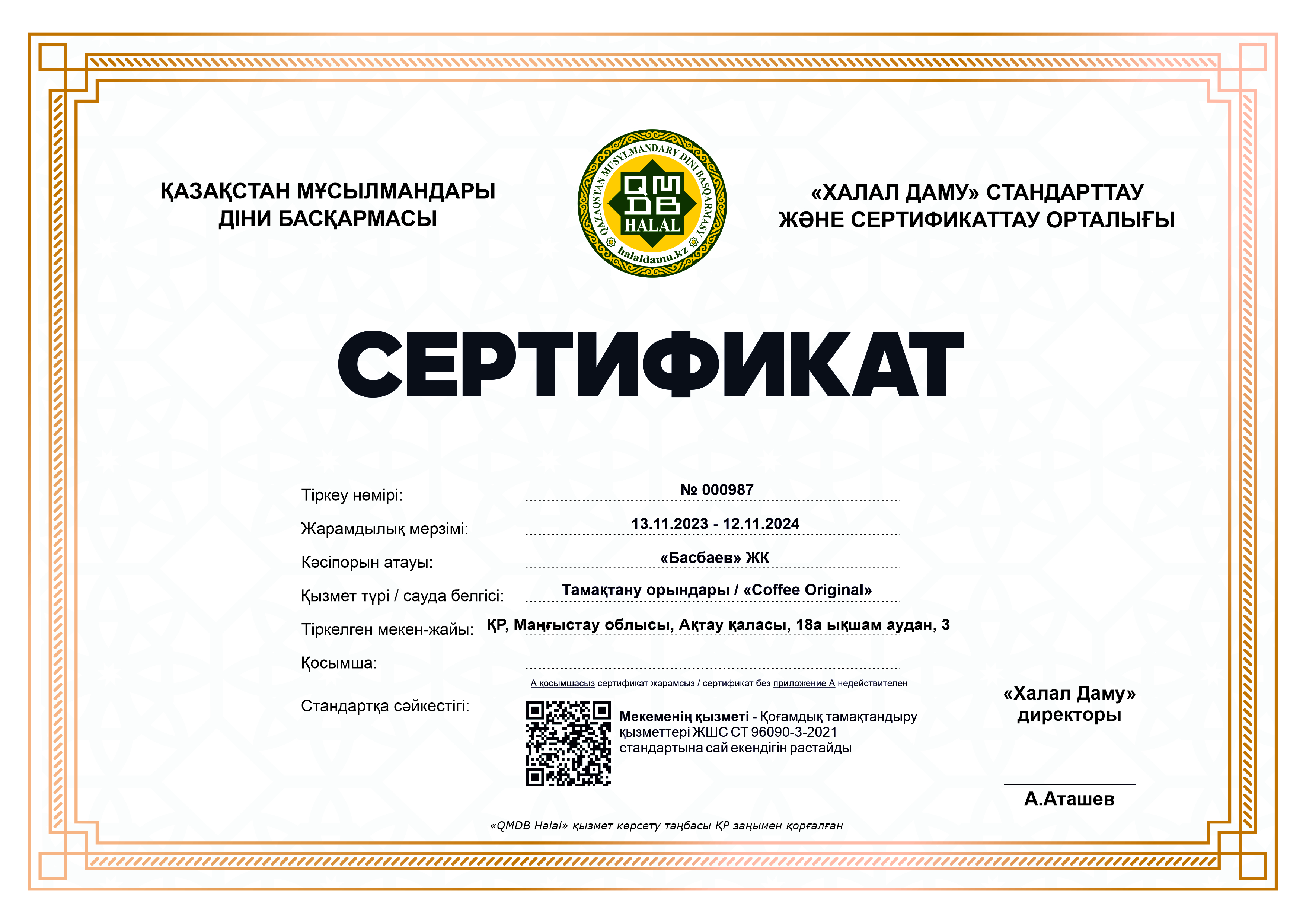 Сертфикат действителен до 12 Ноябрь 2024 ж.