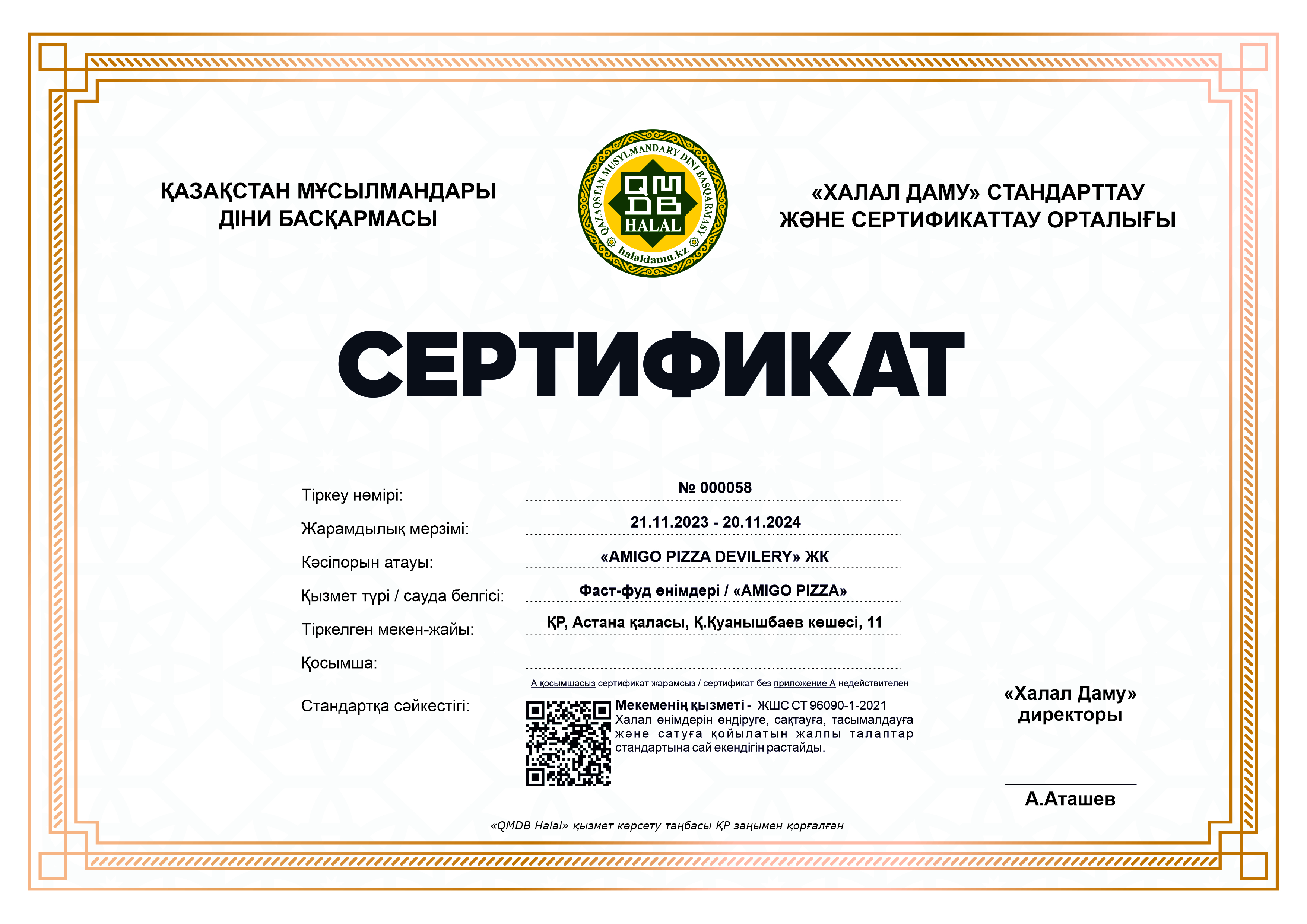 Сертфикат действителен до 20 Ноябрь 2024 ж.