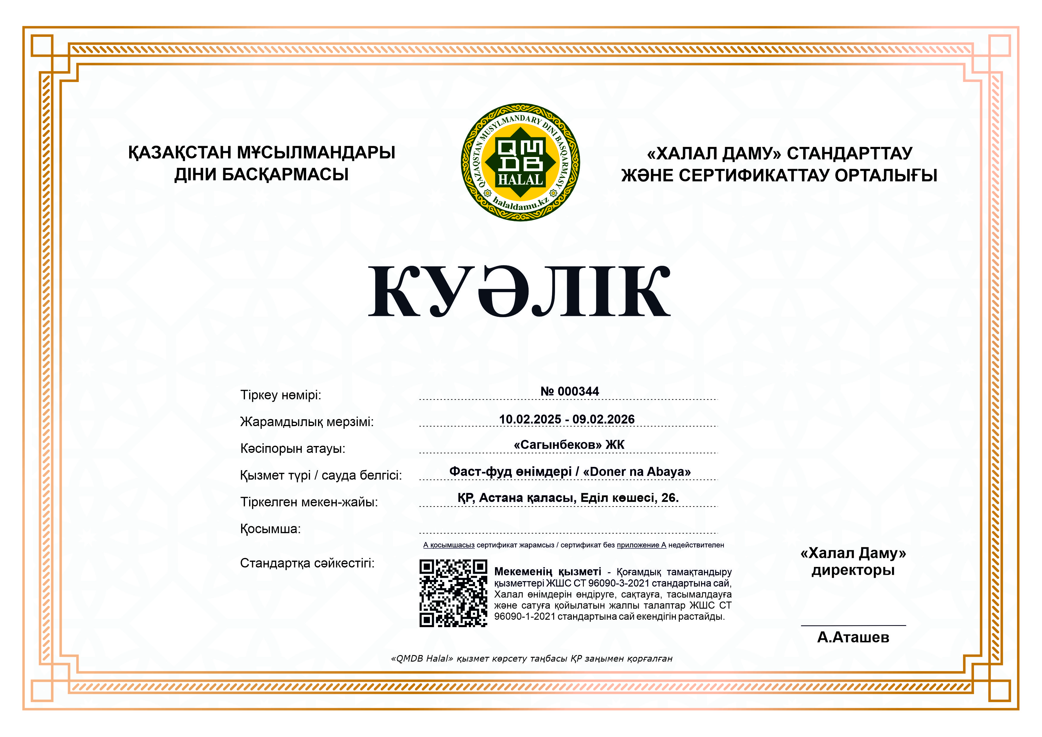 Сертфикат действителен до 9 Февраль 2026 ж.