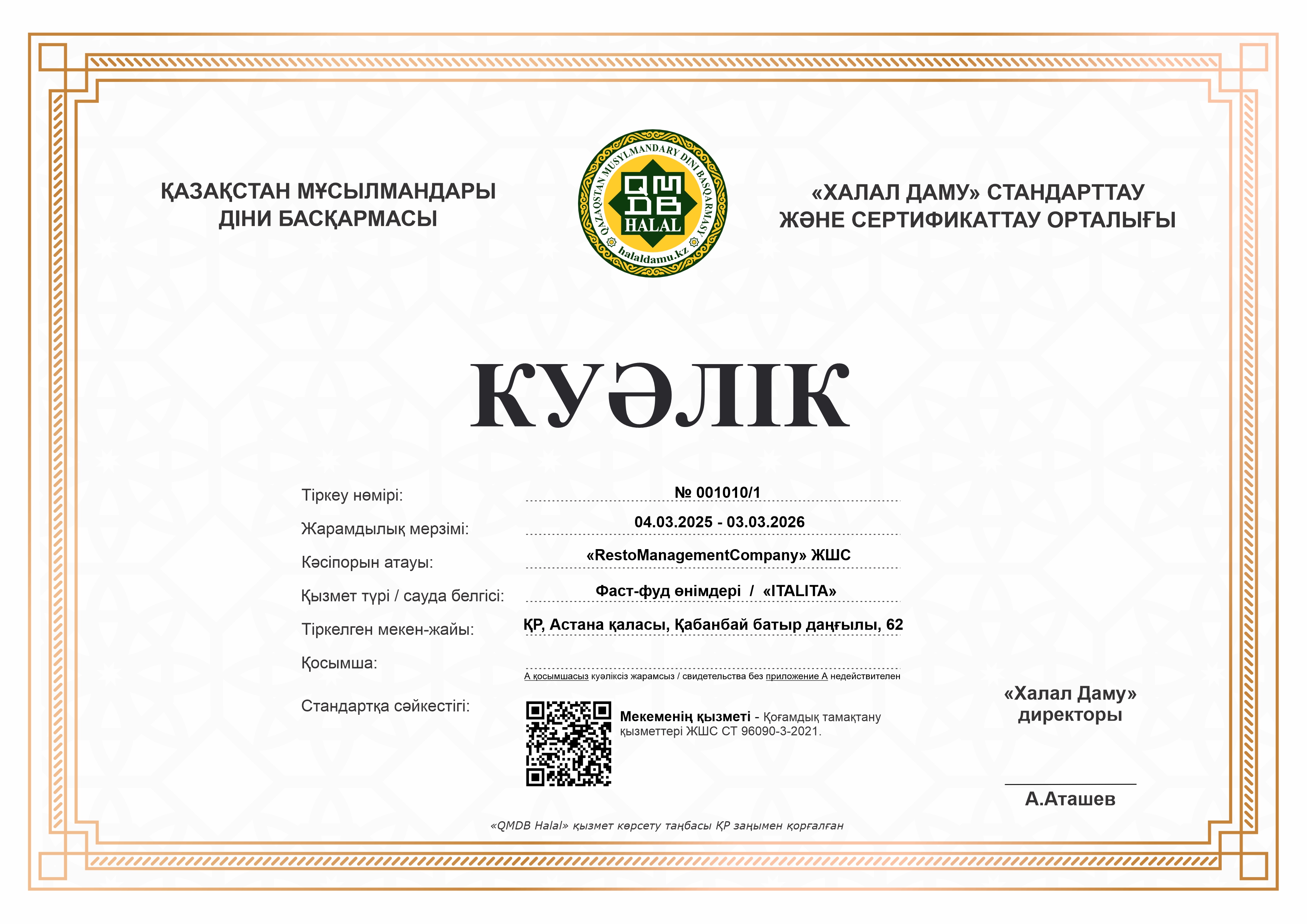 Сертфикат действителен до 3 Март 2026 ж.