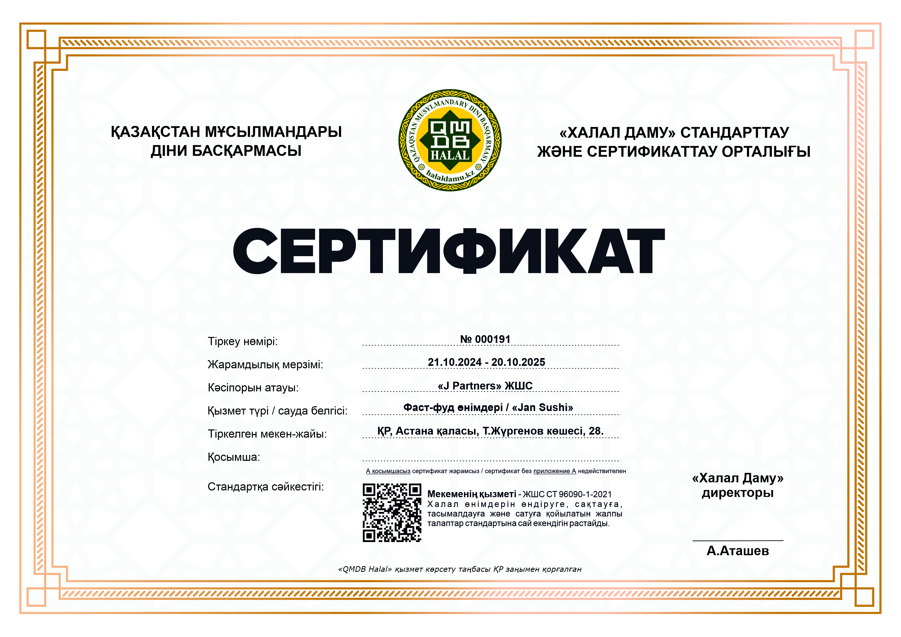 Сертфикат действителен до 20 Октябрь 2025 ж.