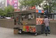 A cart that offers a clean environment for affordable and delicious halal food. The menu includes lamb/chicken over rice, lamb/chicken wrap, and lamb/chicken tabouna sandwiches.