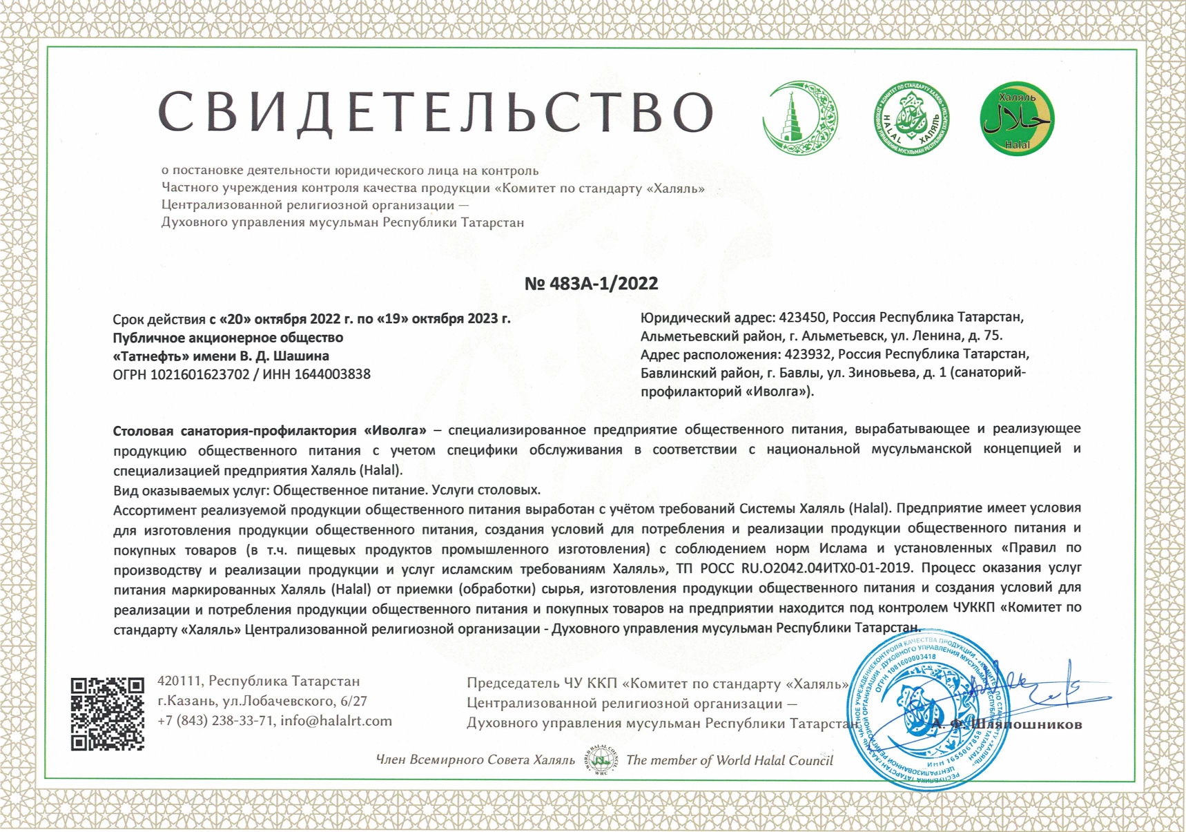 Столовая санатория-профилактория «Иволга» – специализированное предприятие общественного питания, вырабатывающее и реализующее продукцию общественного питания с учетом специфики обслуживания в соответствии с национальной мусульманской концепцией и специализацией предприятия Халяль (Halal).