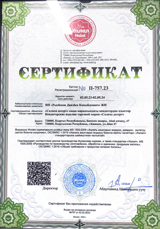 Сертфикат действителен до 2 Май 2024 ж.