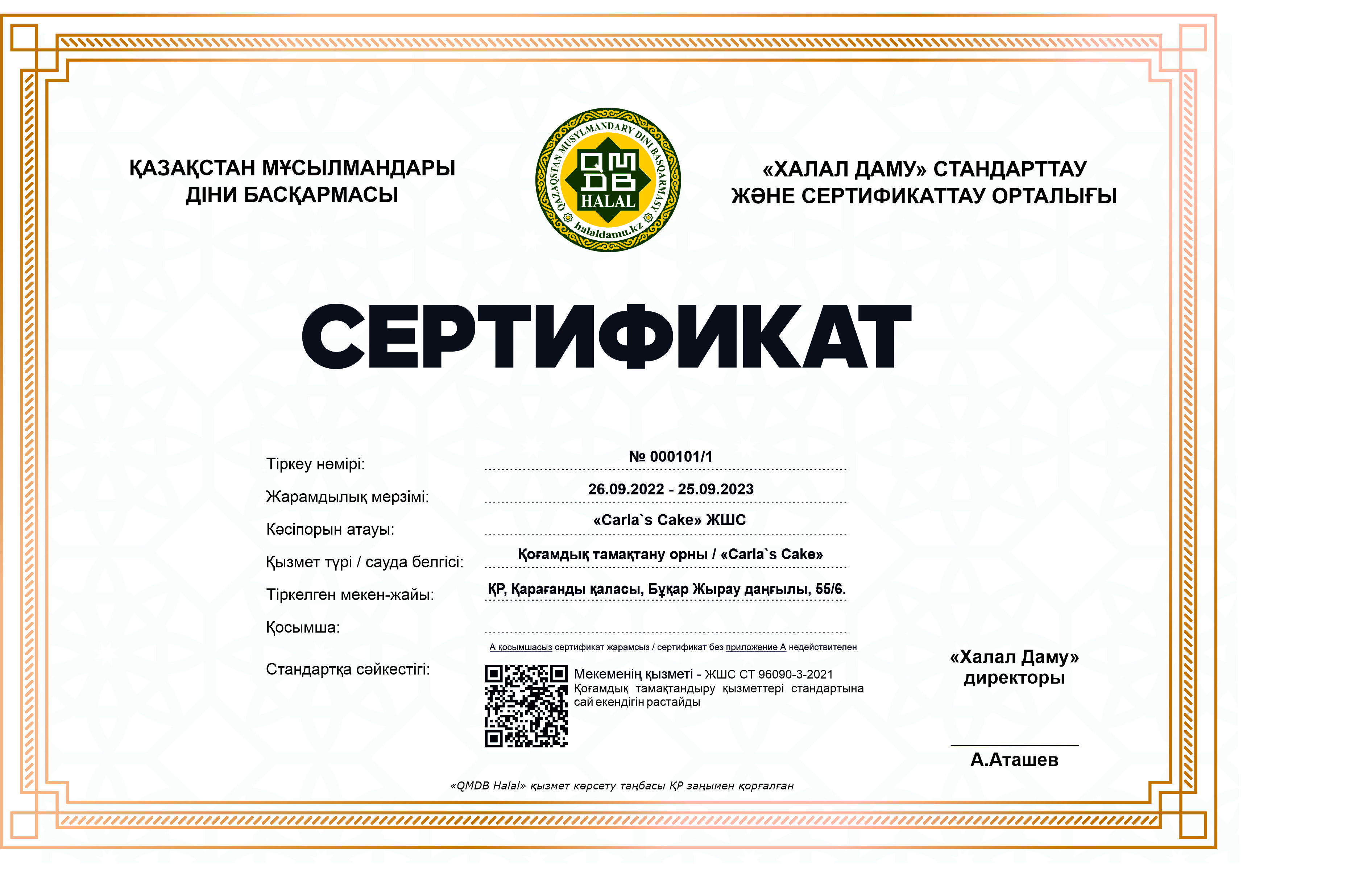 Сертфикат действителен до 25 Сентябрь 2023 ж.