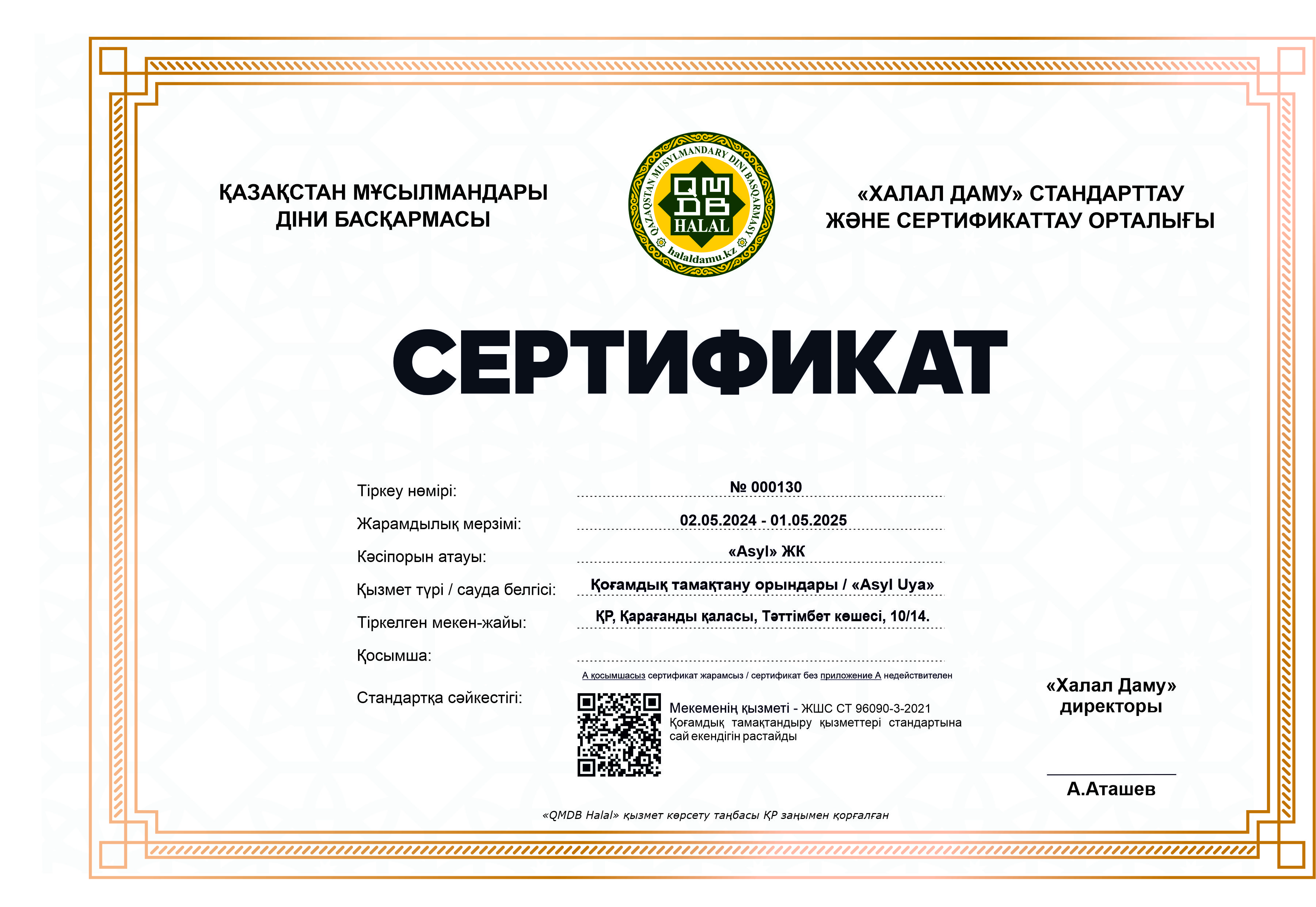 Сертфикат действителен до 1 Май 2025 ж.