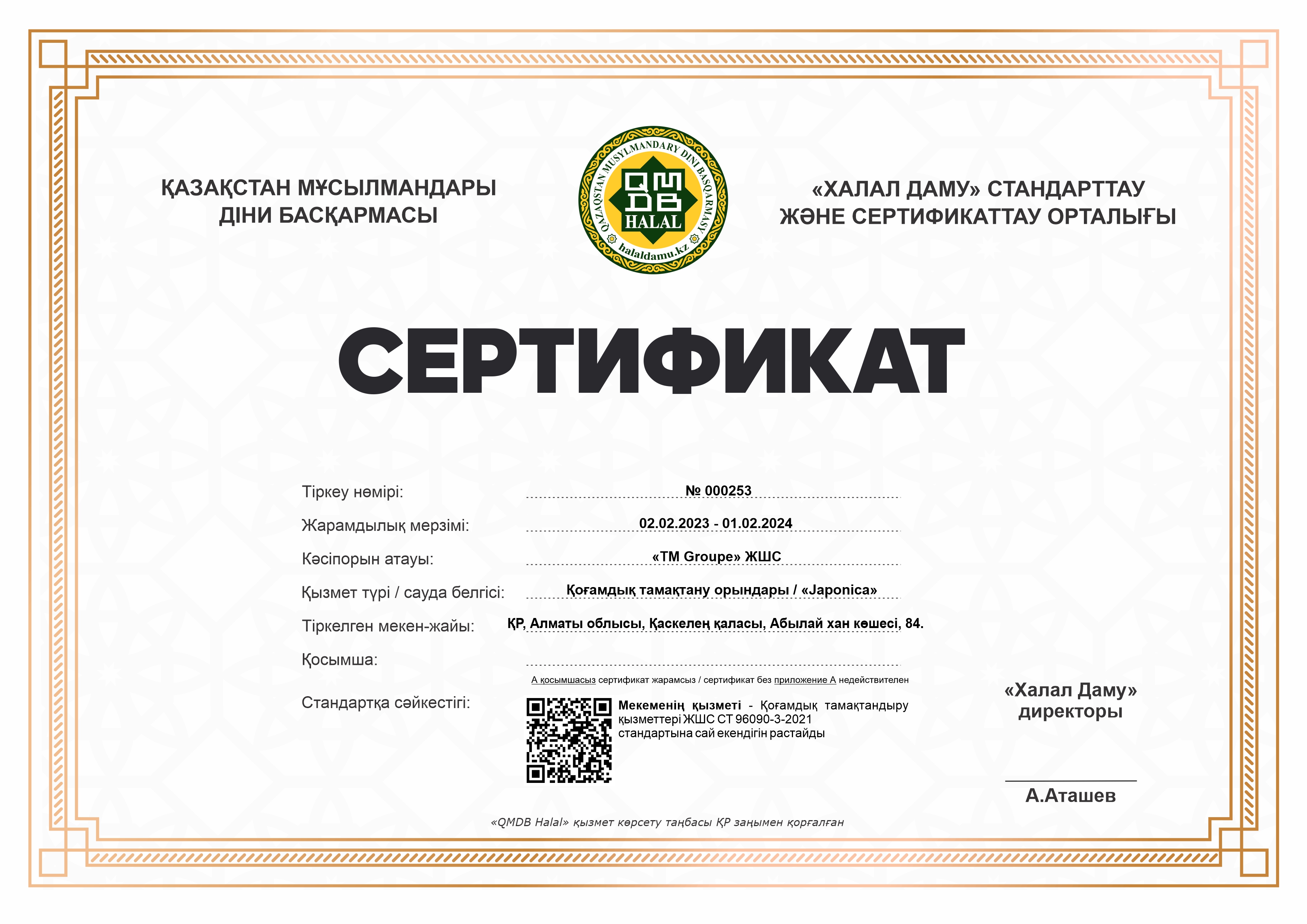Сертфикат действителен до 1 Февраль 2024 ж.