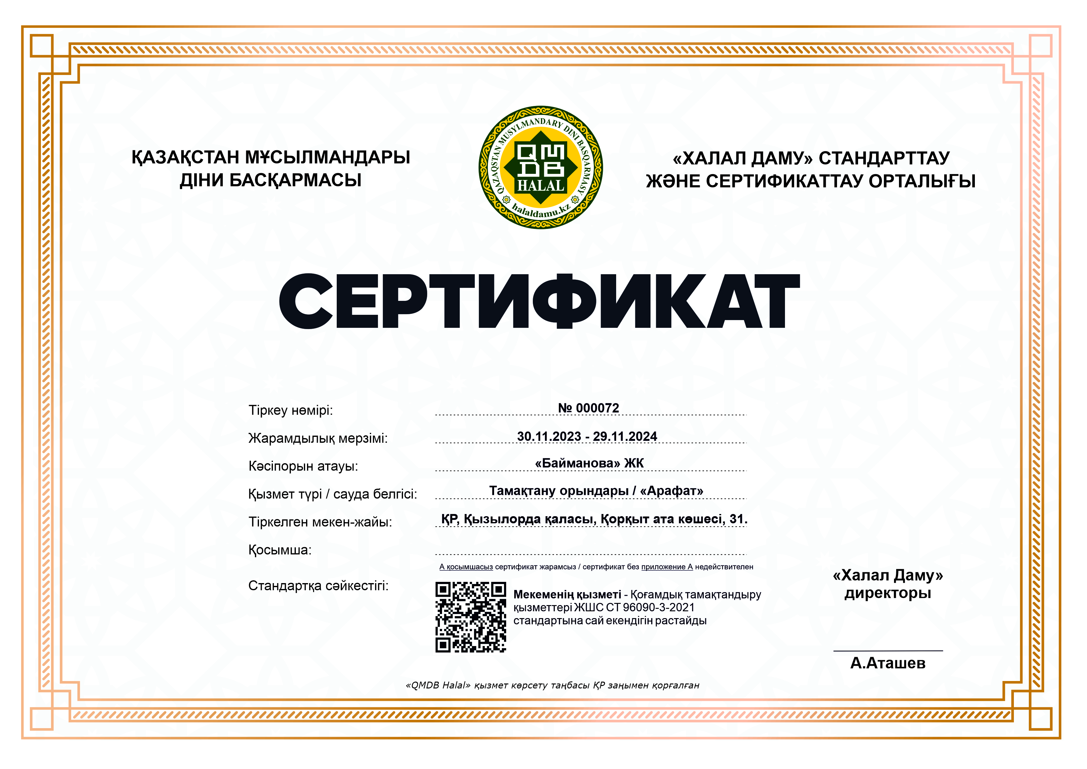 Сертфикат действителен до 29 Ноябрь 2024 ж.