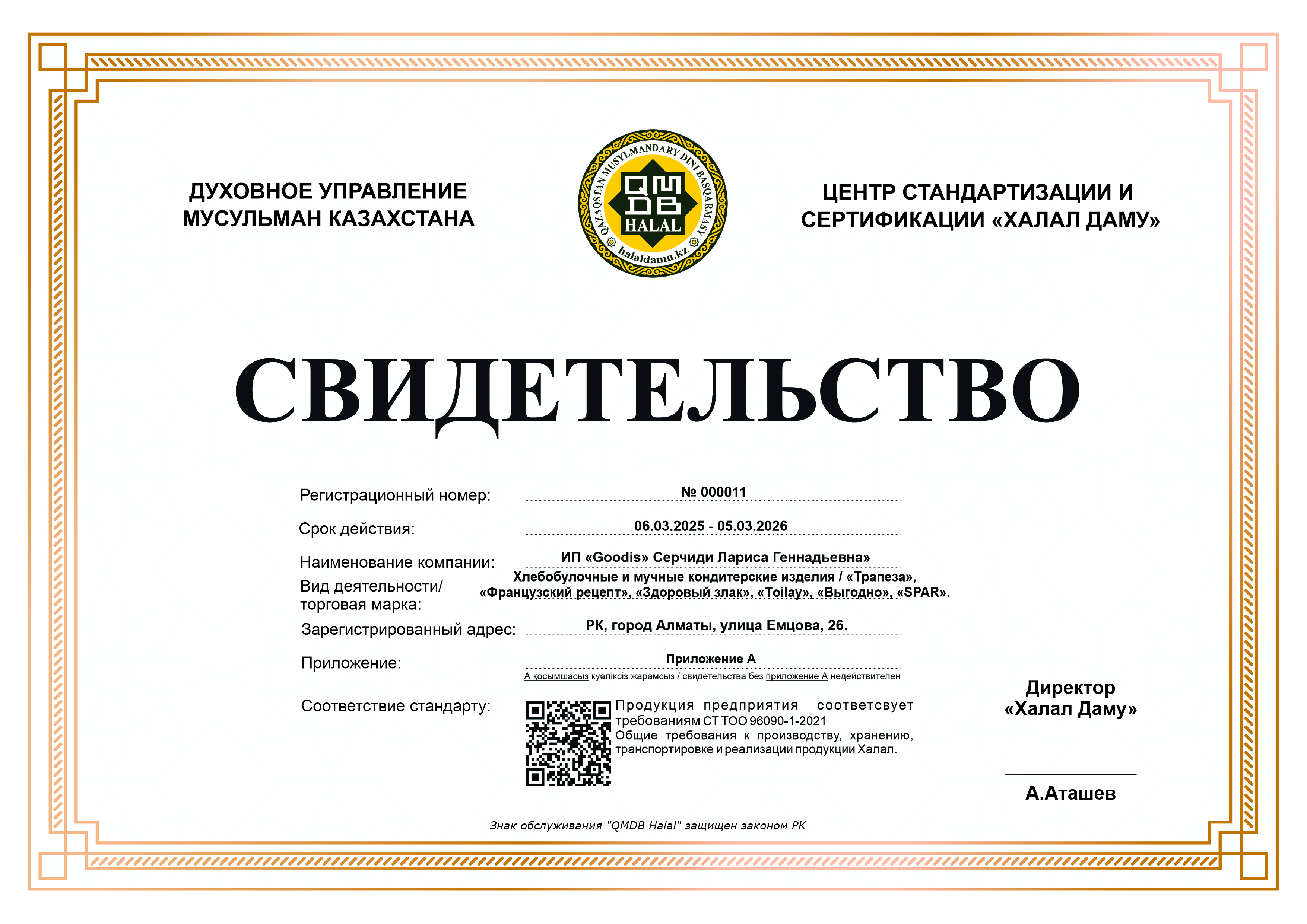 Сертфикат действителен до 05 Март 2026