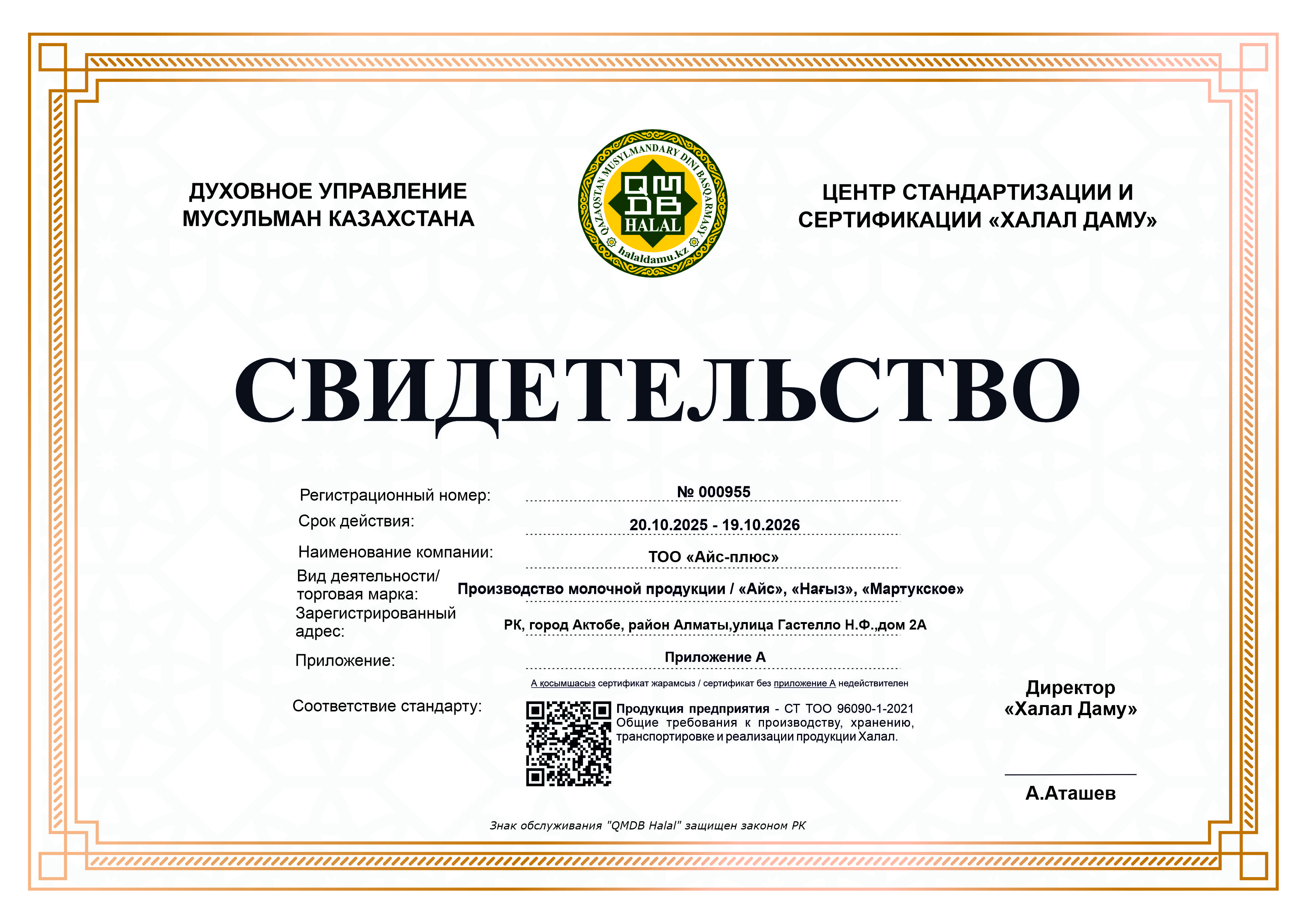 <p>Торговая марка</p> <p>«Айс», «Нағыз», «Мартукское»</p>