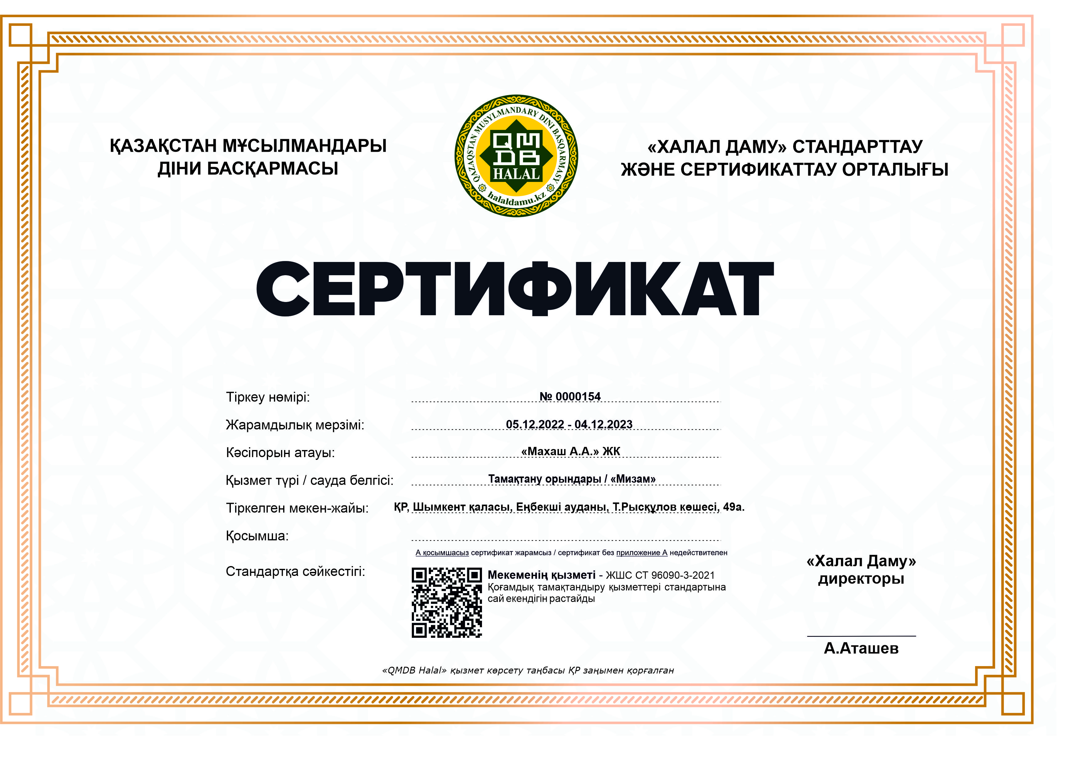 Сертфикат действителен до 4 Декабрь 2023 ж.