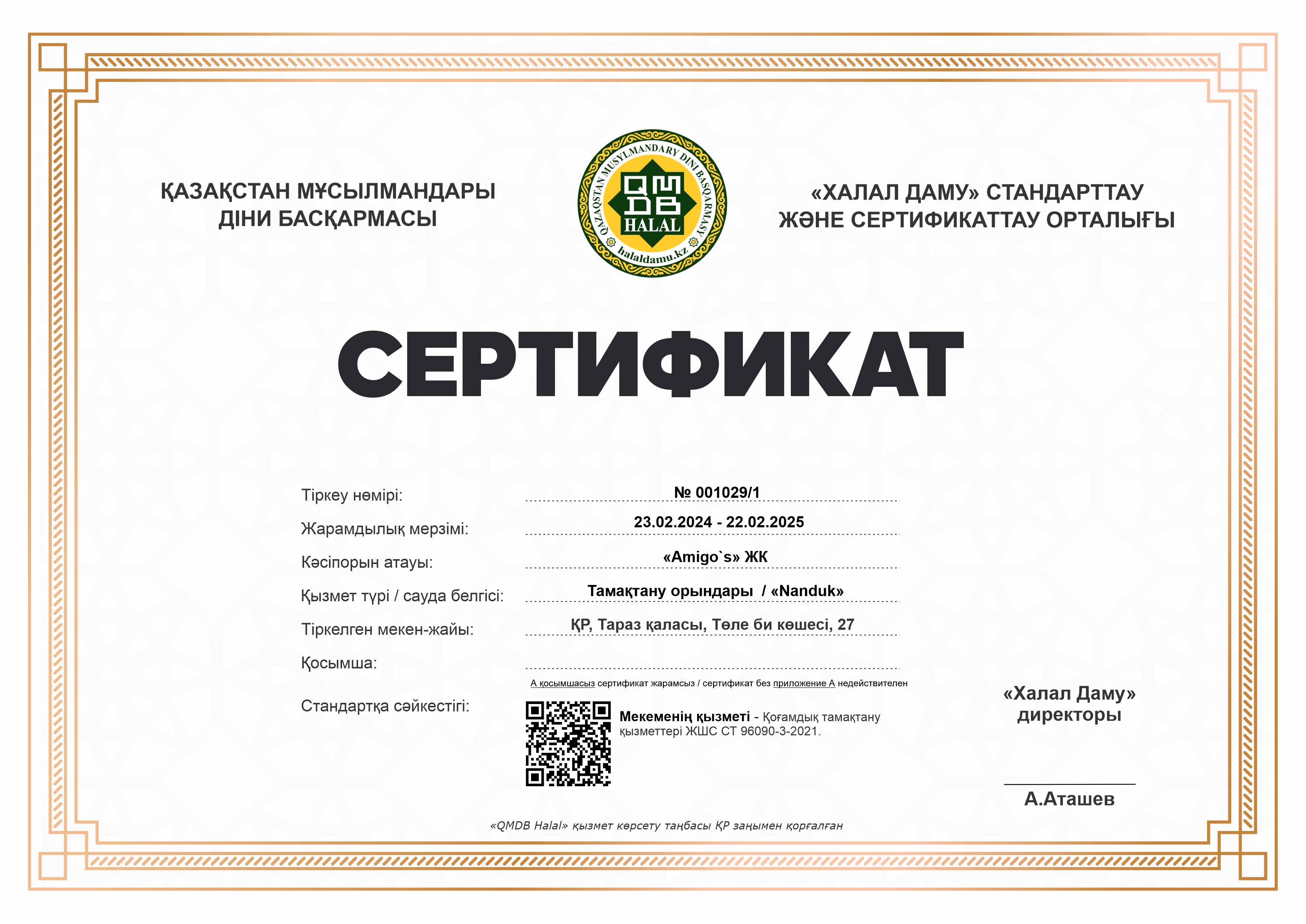 Сертфикат действителен до 22 Февраль 2025 ж.