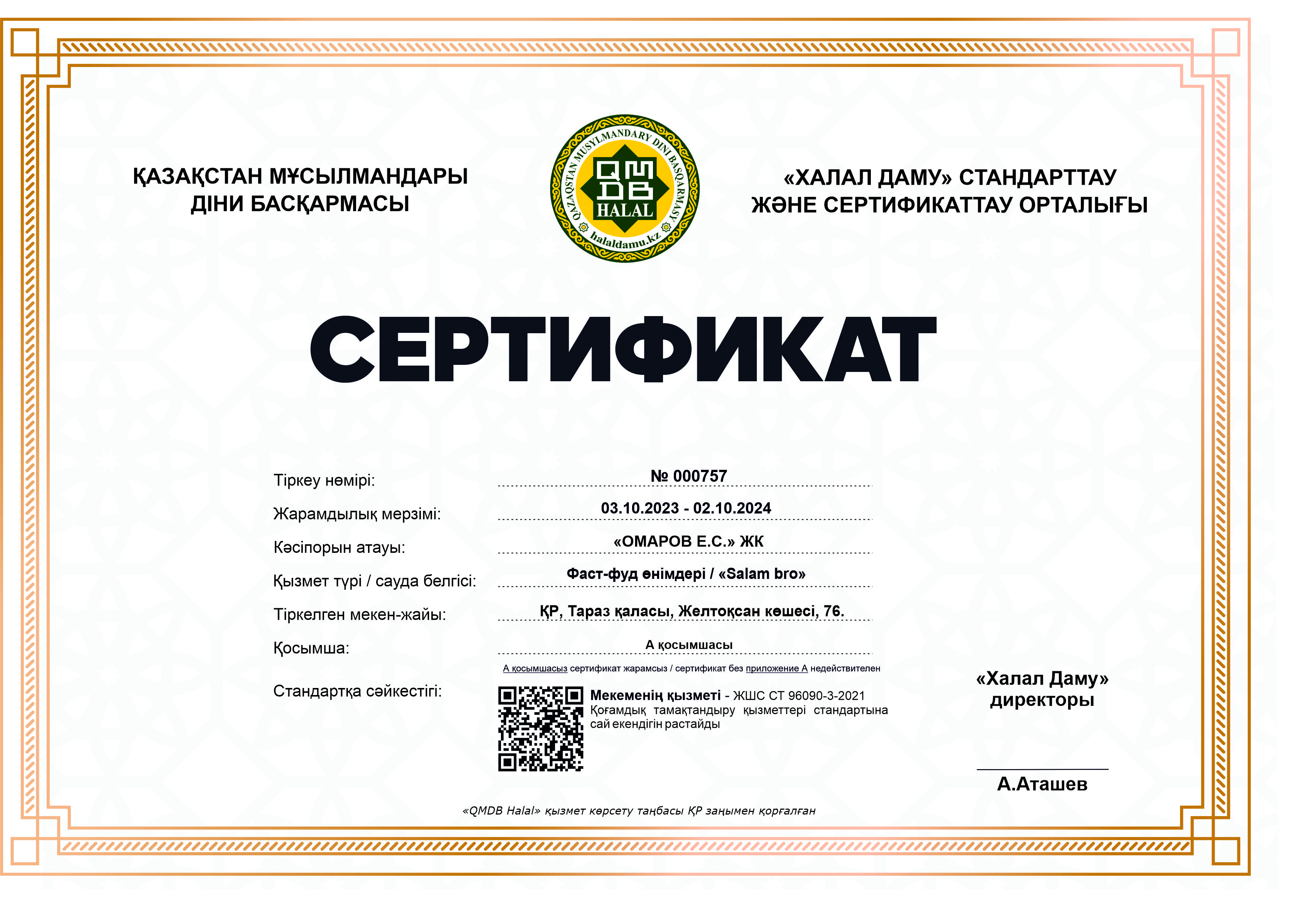 Сертфикат действителен до 2 Октябрь 2024 ж.