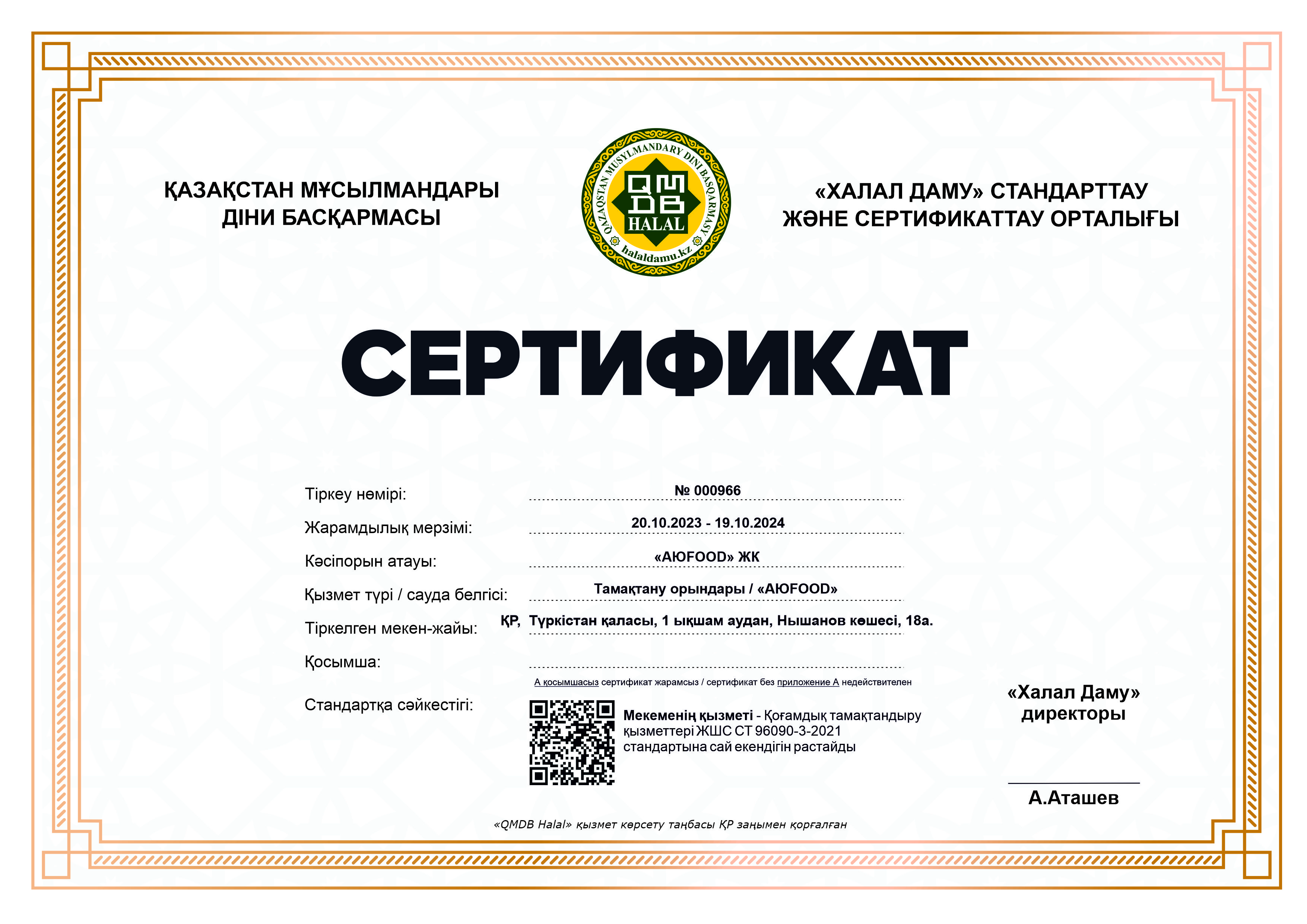 Сертфикат действителен до 19 Октябрь 2024 ж.